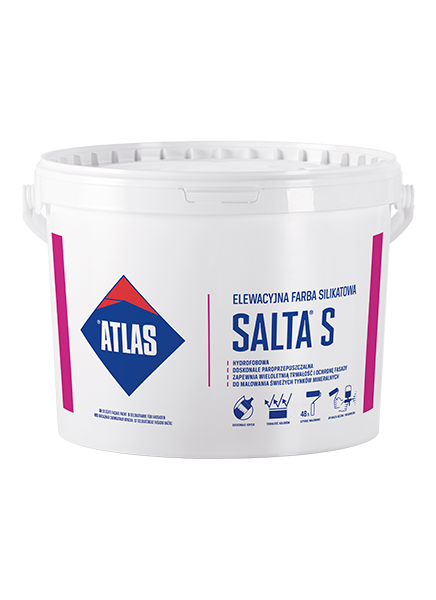 ATLAS SALTA S - façade silicate paint is manufactured on the basis of mineral binder – potassium silicate supported by polymers – therefore it offers unique physical and chemical properties, perfect workability and, above all, long term durability with no change of technical and aesthetic parametres.