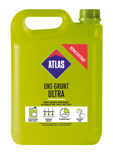 ATLAS UNI-GRUNT ULTRA är ett primer avsedd för olika typer av ytor på väggar, golv, tak, inom och utanför byggnader.