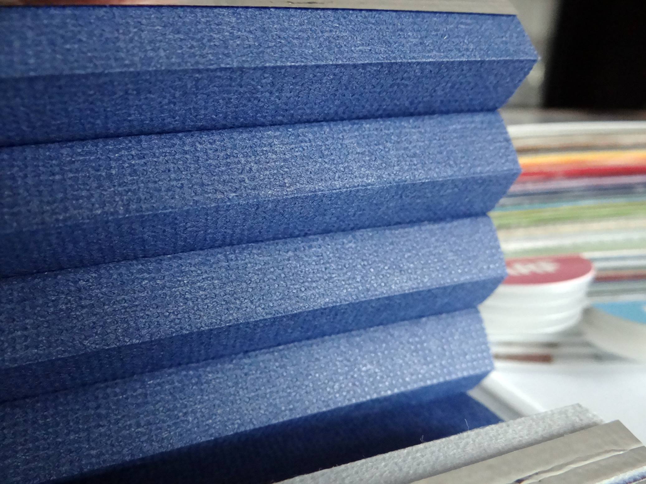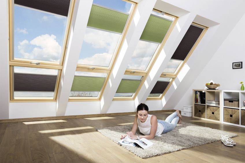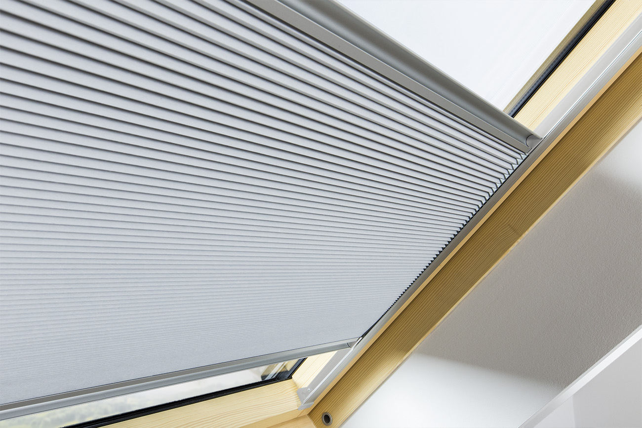 Isolerande dubbelplissé FAKRO APF reglerar ljusinsläppet i rummet och kompletterar rummets interiör. Ett brett sortiment av tyger gör det enkelt att matcha rullgardinen till rummet. Vita sidoskena av aluminium täcker vävkanten, så att gardinen kan fixeras i valfritt läge. Sidoskenorna förhindrar också ljus från att tränga in vid sidorna så att man får en mörkläggande effekt. Väven fungerar som en värmespärr på sommaren och förhindrar värmeförlust vintertid.