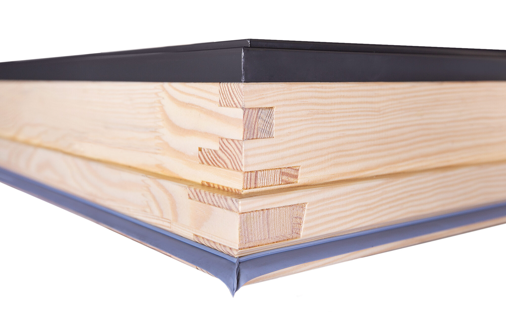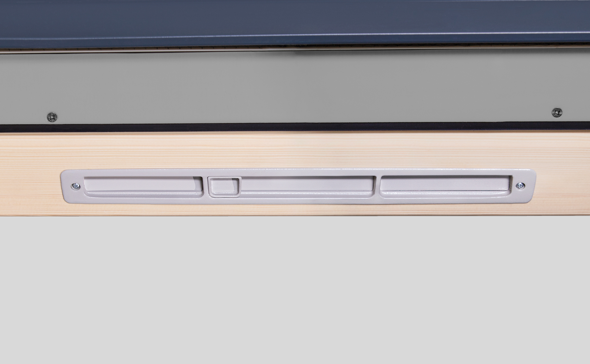 The bottom corners are equipped with special drainage channels to divert water from condensation or potential leaks, e.g., due to damage or dirt on the seals. This reduces the exposure of the wooden profiles of the roof window to moisture, contributing to their durability.