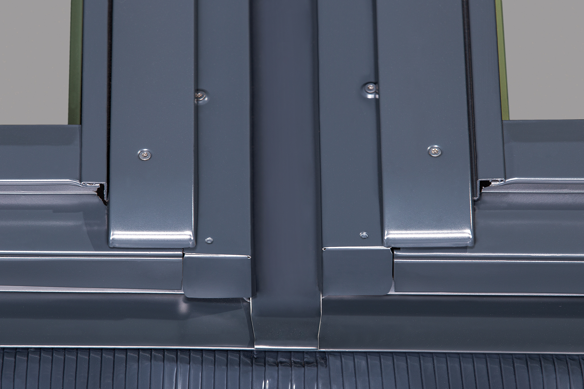 - Modern design that integrates perfectly into your roof – the elegant anthracite (RAL 7016) metal cladding harmonizes with modern architectural trends. The contemporary shape of the metal cladding was designed with a minimalist and uniform appearance in mind, making it aesthetically perfect for modern roofs.