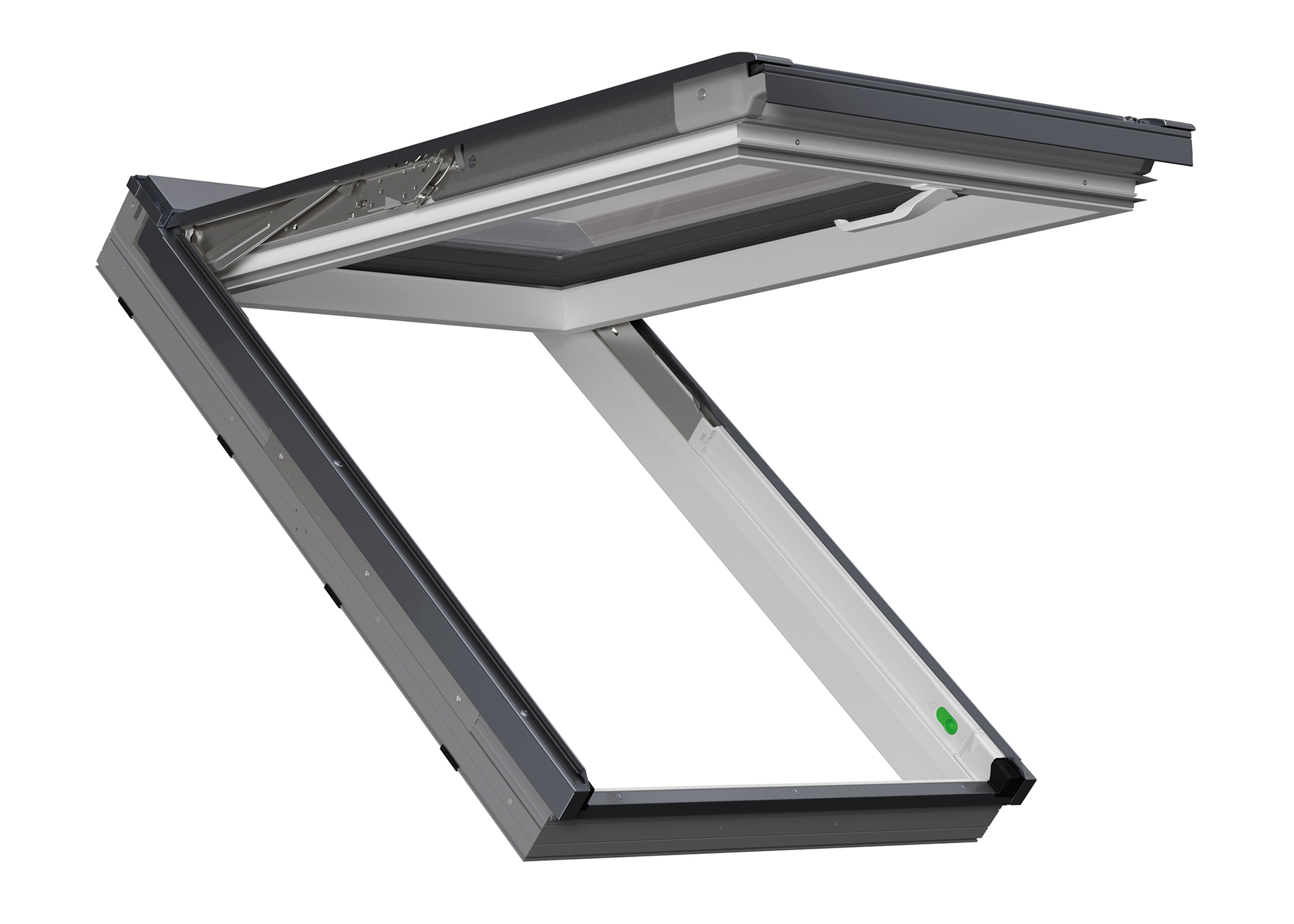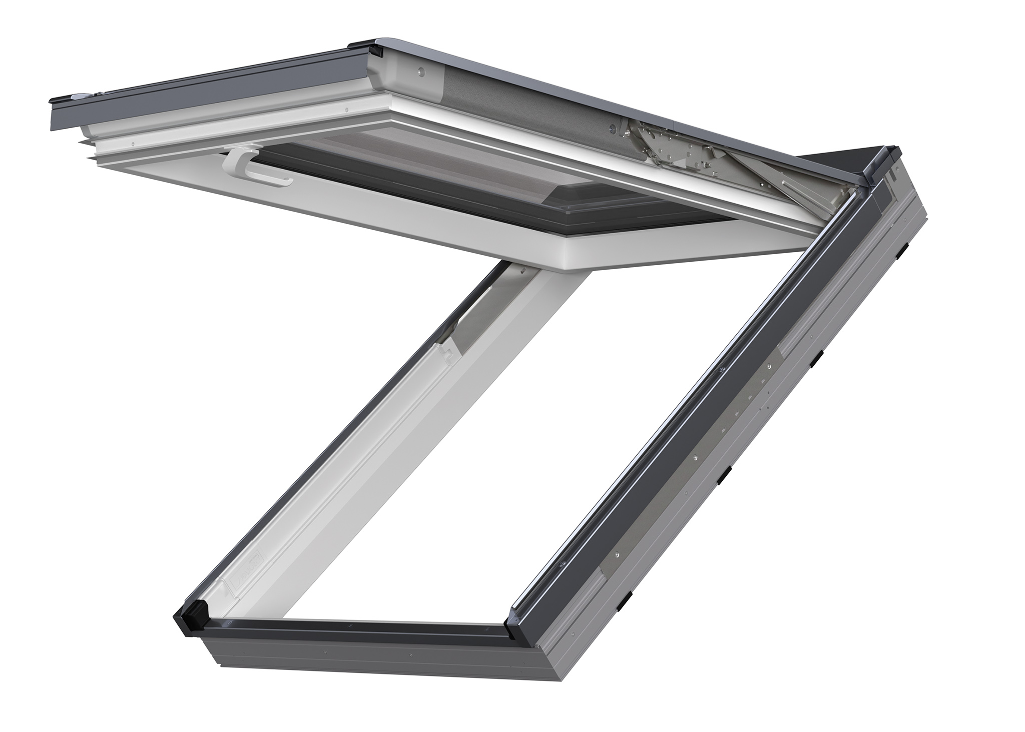Maximum Operating Comfort – The top-hung and pivot system allows for easy ventilation and cleaning of the glazing. The centrally located hinge ensures stability and smooth movement, allowing the sash to be held open between 0° and 45°. The upper hinge allows for full use of the attic space and easy rotation of the sash by 180°. The opening mode can be conveniently changed via the preSelect switch. The guide facilitates precise closing of the window and increases operating comfort. This opening system is the most popular and offers the highest functionality.