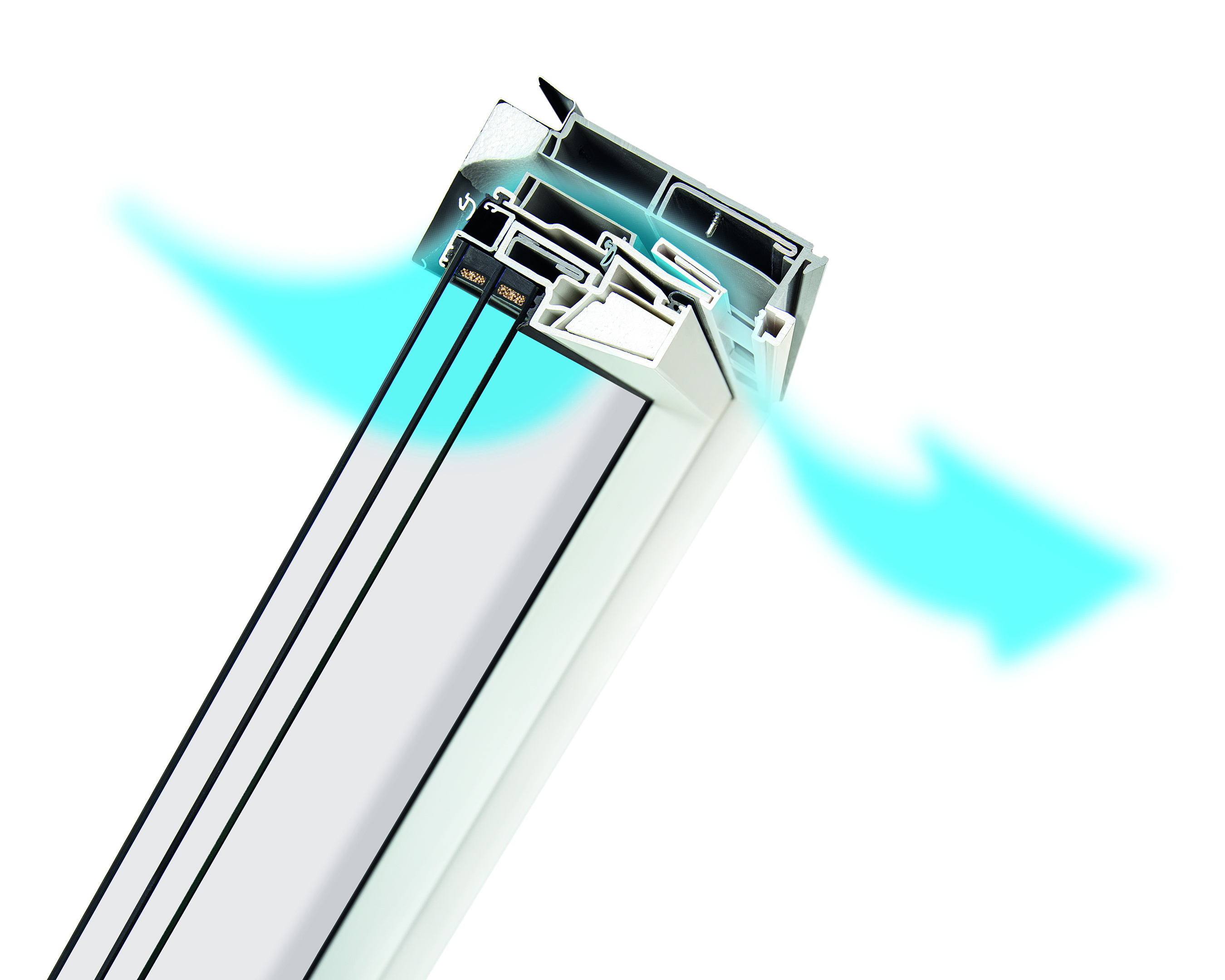 It is largely made from recycled materials and is almost completely recyclable. The white PVC profile combines elegance with increased moisture resistance. The integrated air vent ensures continuous air circulation, thereby increasing well-being in your home.