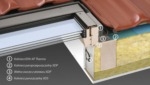 - thermo-insulating material - a universal way of insulation enables roof window insulation regardless of the roof opening size. The thermo-insulating material is mad of specially impregnated sheep wool. Its proper density and high elasticity enables ideal adjustment of the material to the space it fills.