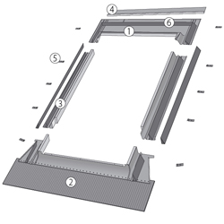 • Flashing for installing single roof windows into panel sheet with standing seam.