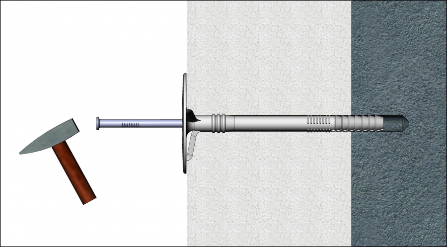 Hammer insulation fixing with a plastic pin designed for embedding of Jointless Facade Thermal Insulation Systems (BSO).