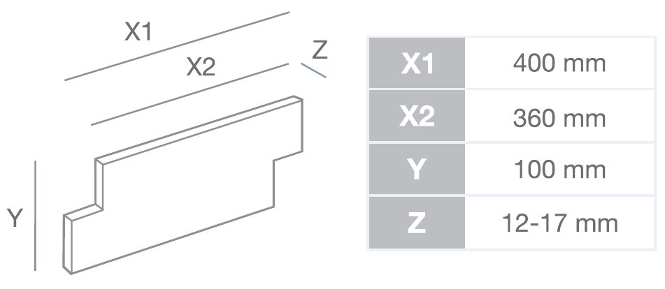 | Tile | 360-400x100x12-17 | 12 | 0,43 m2 | 12,7 kg |