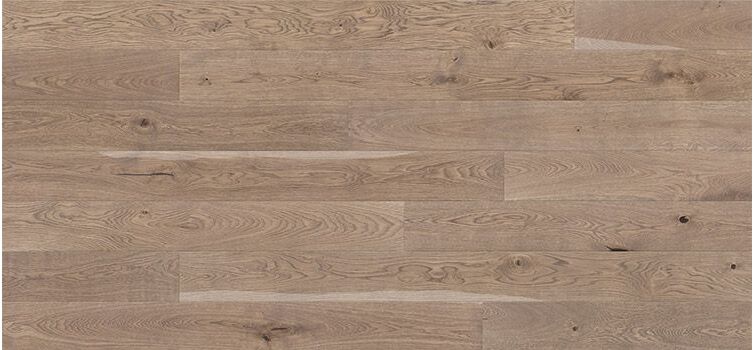 Ekgolvet Bowfell består av 155 mm breda, 1-staviga plankor i en lätt askgrå nyans och med ett tydligt trämönster. Golvets fyrsidiga fasning får det att se lättare ut. Borstat och mattlackat.