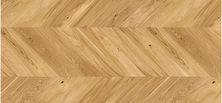 Trägolv lagt i chevron mönster – som kallas också för fransk fiskben – brukade råda förr i tiden i vackra villor och palatser. Nuförtiden kommer mönstret tillbaka och upplever faktiskt sin renässans. Stavar tillsågade i 45 graders vinkel skapar en imponerande komposition, vilken i sin tur ger rummet en känsla av lätthet och elegans.