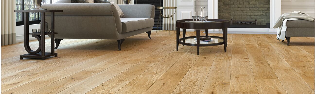 Genom att tränga in i träet framhäver olja materialets naturliga skönhet. UV-olja skapar en tunn skyddsfilm på träytan. Den förstärker golvets tålighet mot smuts och fläckar.