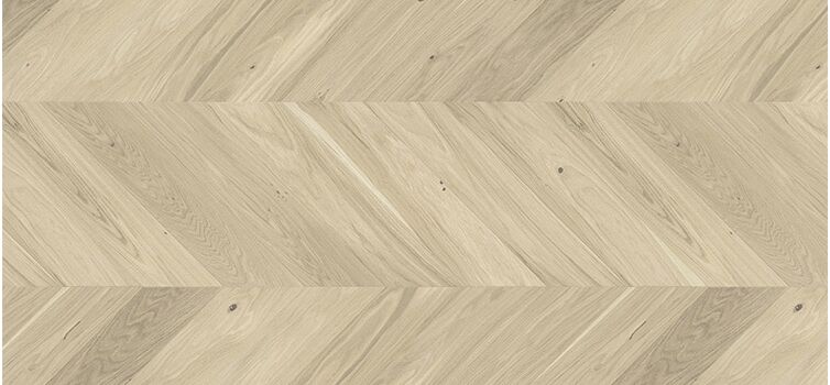 Trägolv lagt i chevron mönster – som kallas också för fransk fiskben – brukade råda förr i tiden i vackra villor och palatser. Nuförtiden kommer mönstret tillbaka och upplever faktiskt sin renässans. Stavar tillsågade i 45 graders vinkel skapar en imponerande komposition, vilken i sin tur ger rummet en känsla av lätthet och elegans.