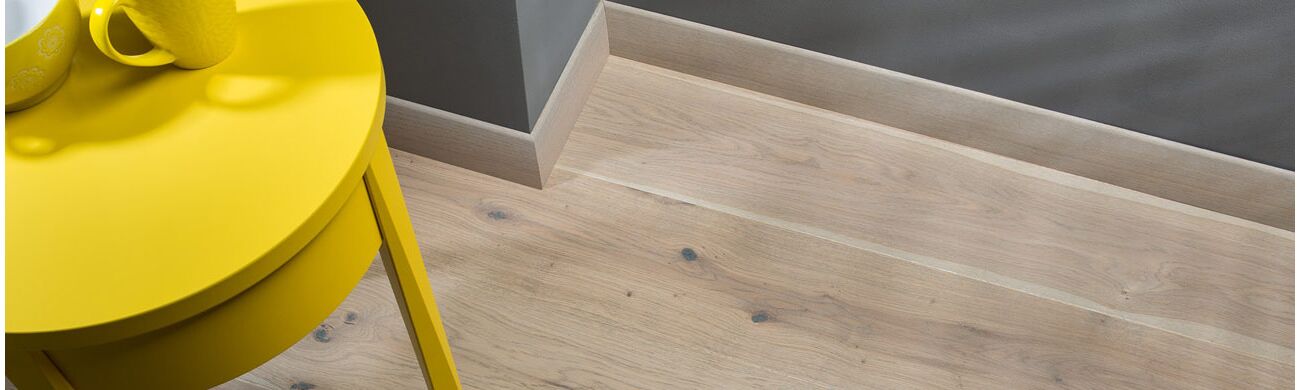 Genom att tränga in i träet framhäver olja materialets naturliga skönhet. UV-olja skapar en tunn skyddsfilm på träytan. Den förstärker golvets tålighet mot smuts och fläckar.