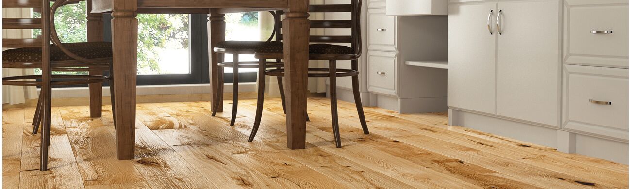 Multi-layered coating with a UV-hardened lacquer system protects the floor by forming a surface protecting against abrasion, dirt and micro-scratches.