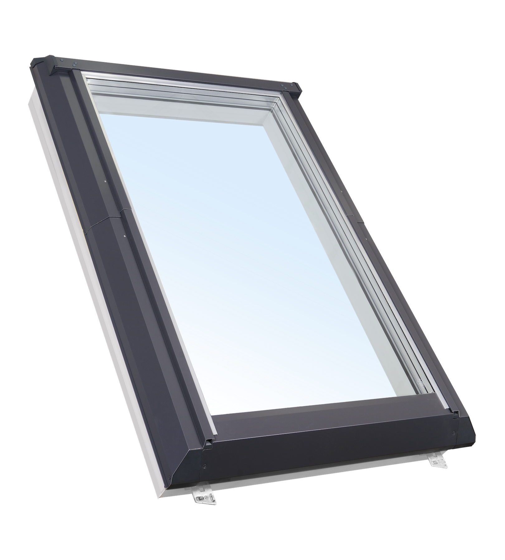 Color of the flashing in classic gray, RAL 7043 or optional brown RAL 8019. It directs rain and melt water around the window and also protects it from wind. Only with the help of a flashing can ensure an absolutely tight connection between plastic skylight and roof.