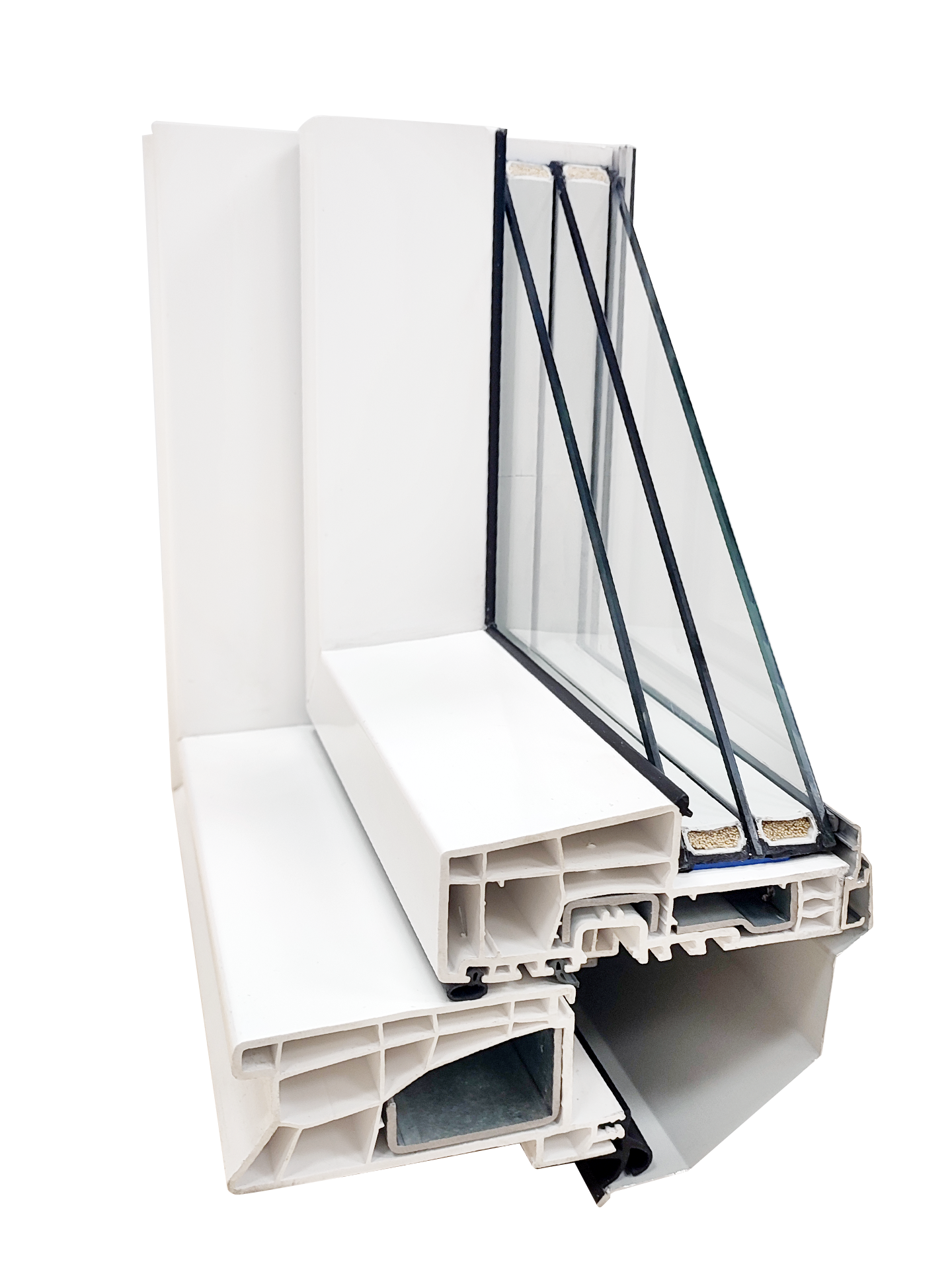 | Glazing | Single chamber (double glazing) | Single chamber (double glazing) | Double chambers (triple glazing) | Double chambers (triple glazing) |