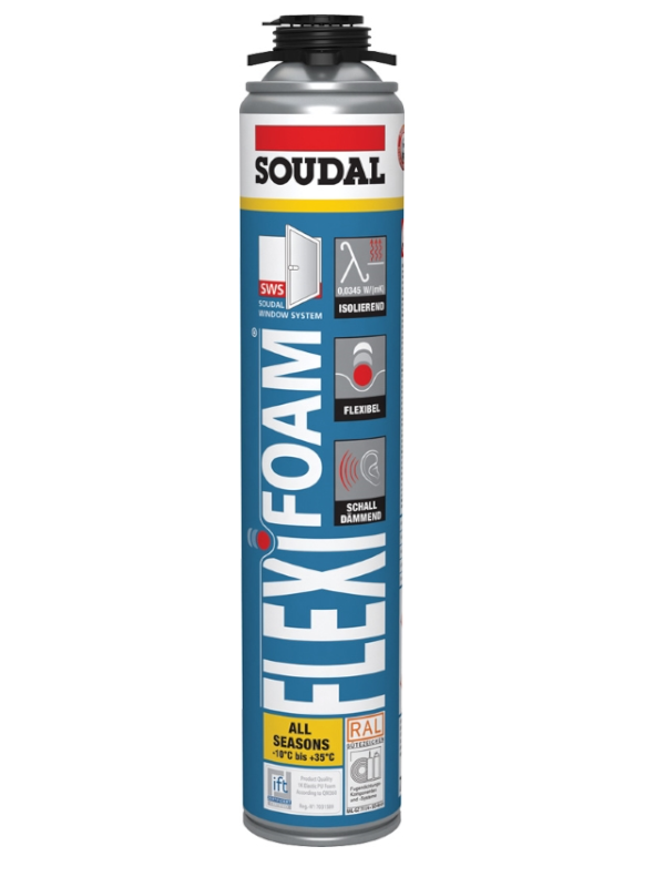 Flexifoam är ett högkvalitativt, mycket elastiskt, enkomponents polyuretanskum. Med en rörelseabsorption på upp till 50% är det det mest flexibla skummet på marknaden. FLEXIFOAM är idealiskt för renoveringar och nybyggnationer och kan på ett optimalt sätt kompensera för ojämnheter, luckor och konstruktionsrelaterade defekter i fönsteranslutningsområdet, vilket säkerställer tillförlitlig och hållbar värme- och ljudisolering.