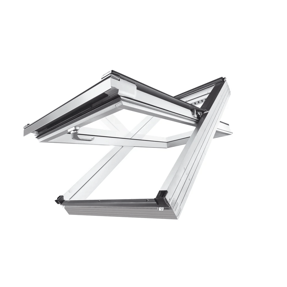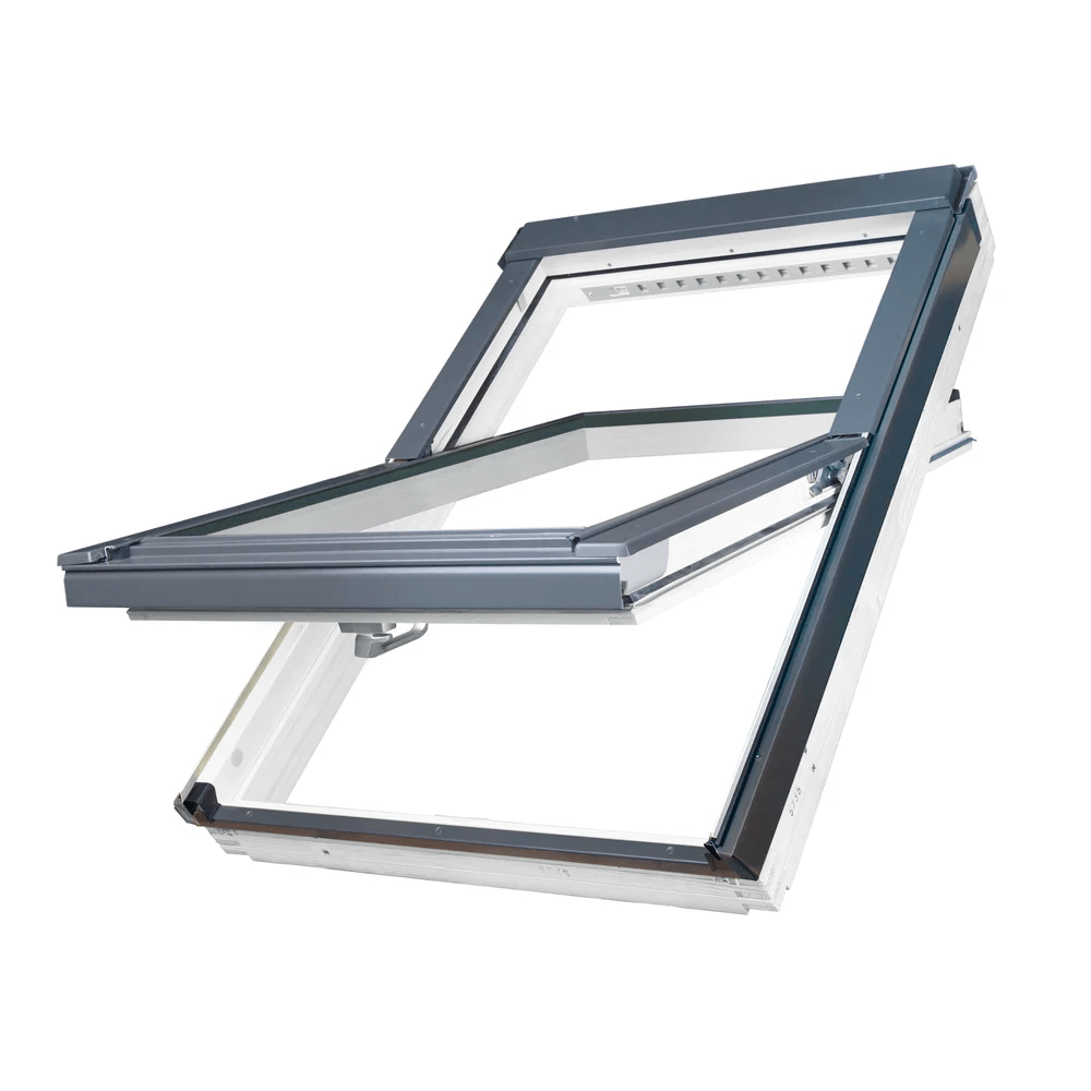 FAKRO FTU-V U4 är ett mycket välutrustat pivåhängt takfönster. Det öppnas och roteras runt sin egen axel och passar i stort sett överallt i hemmet. Vid rengöring roteras fönstret 180° så att du enkelt kommer åt även på utsidan. Beslagets konstruktion möjliggör en säker placering av det öppna fönstret i alla lägen. Pivåhängda takfönster är bästa valet om du vill placera möbler under takfönstret.